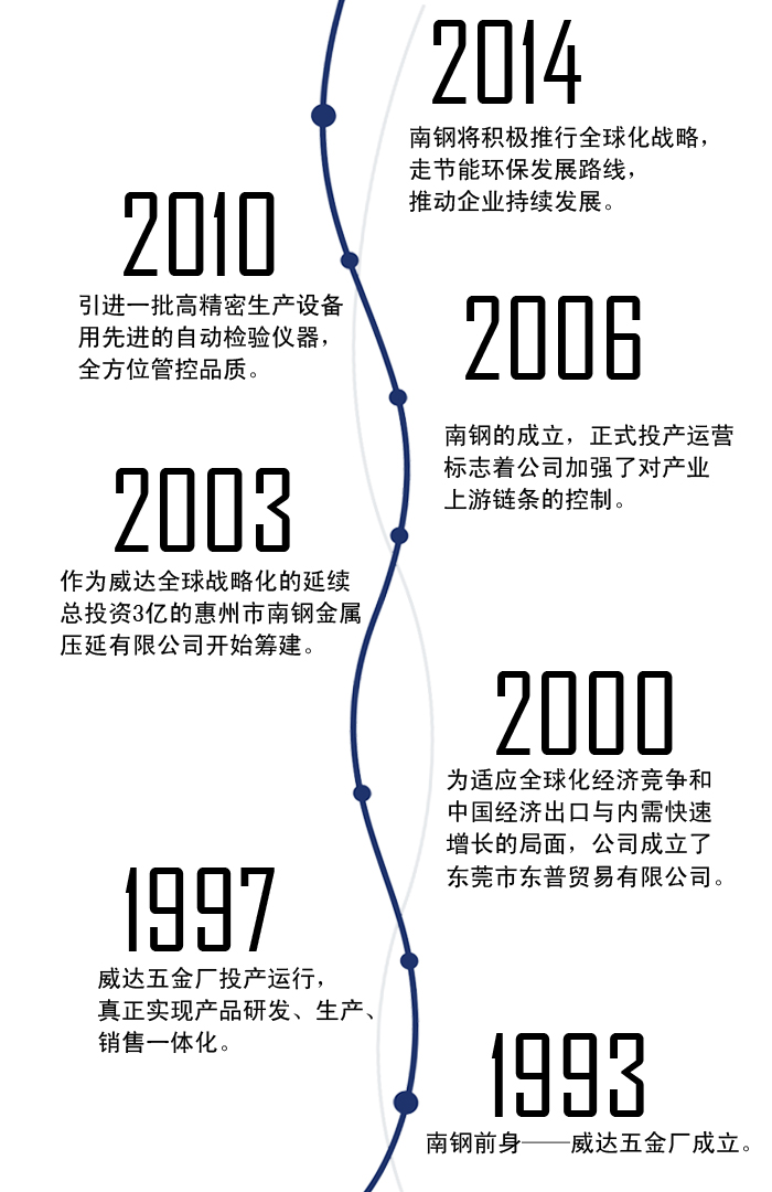 2003年,作为威达全球战略化的延续,总投资3亿的惠州市南钢金属压延有限公司开始筹建。